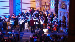 von Benno, 7d: Am 9.12. fand in der Sankt Gertrud-Kirche unser Weihnachtskonzert statt. Bei weihnachtlicher Beleuchtung gab es eine große musikalische Vielfalt, bestehend aus dem