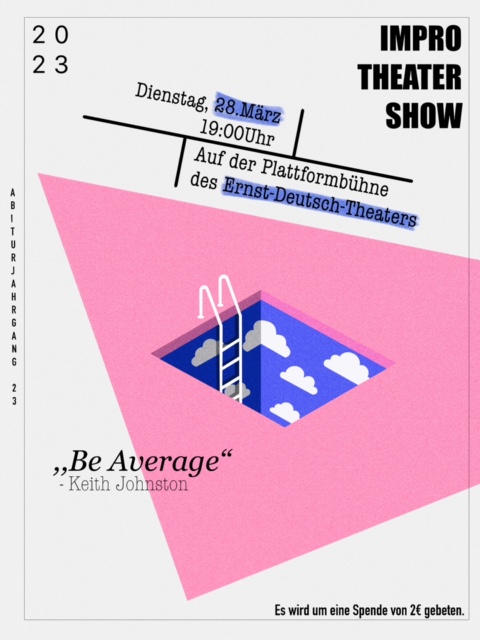 Ganz herzlich lädt der S4 Theaterkurs zu seiner Impro-Show am nächsten Dienstag, den 28.3.2023 um 19:00 Uhr auf die Plattformbühne des Ernst-Deutsch-Theaters ein.
