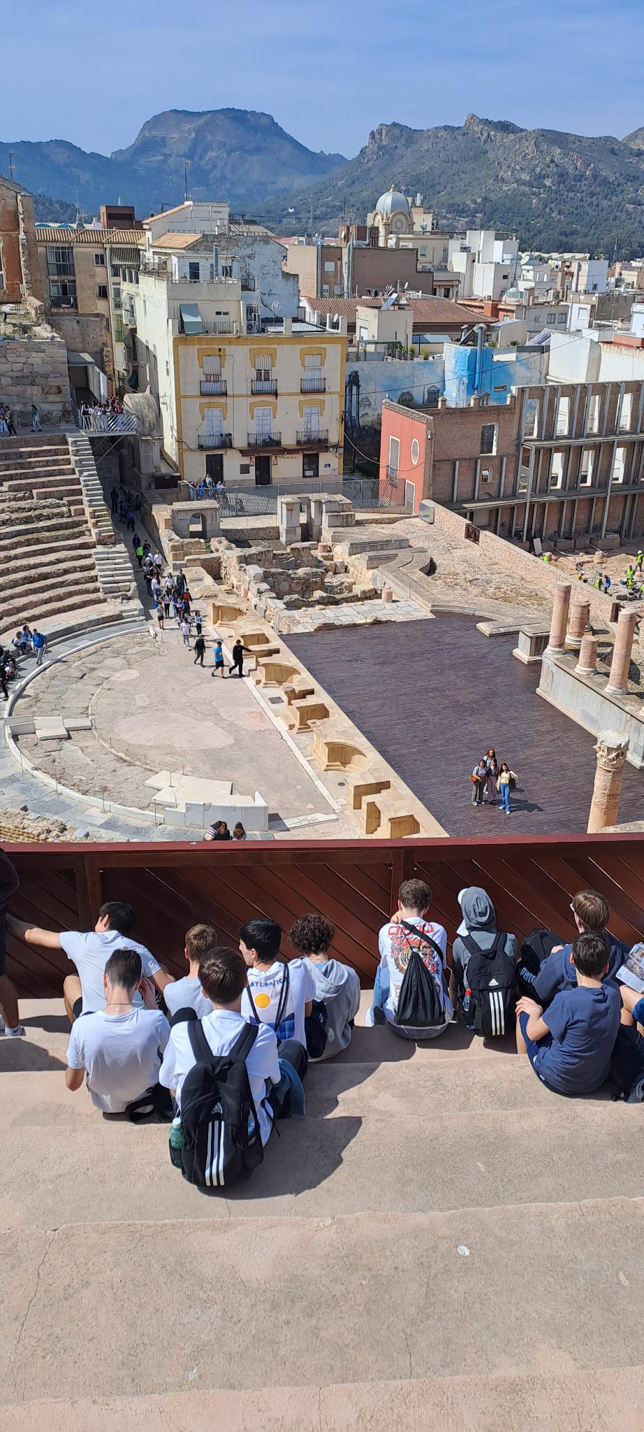 In Cartagena waren wir mit der ganzen Gruppe auf Bootstour und in dem Römischen Theater. Nachmittags und am Wochenende nehmen die Austauschschüler*innen mit ihren Familien an unterschiedlichen Aktivitäten teil oder treffen sich, z.B. um gemeinsam einen spanischen Mitschüler bei einem Basketballspiel anzufeuern.