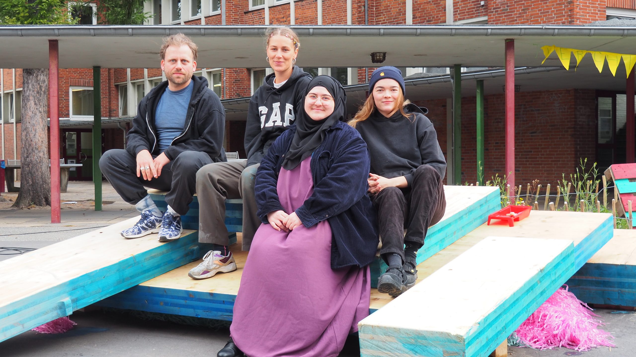 Seit September bereichern verschiedene Sitzgelegenheiten unseren Schulhof. Durch die Nachnutzung von Baumaterial des Hamburger Architektursommers haben Studierende der AMD Hamburg diese Gestaltungselemente geschaffen. Unsere Schülerinnen haben die Gestaltung durch eine frühzeitige Einbindung mit Ideen beeinflusst und Schülerinnen aus unseren 5ten Klassen haben bei der Endmontage mitgeholfen. Auf diese Weise wurde der Schulhof verschönert und das Material umweltschonend weiterverarbeitet. Ein gelungenes Beispiel für ein Upcycling-Projekt.