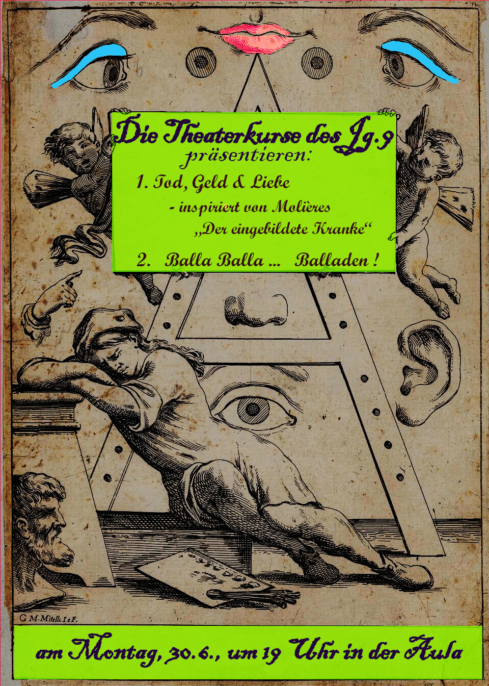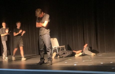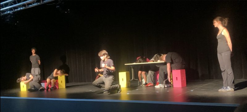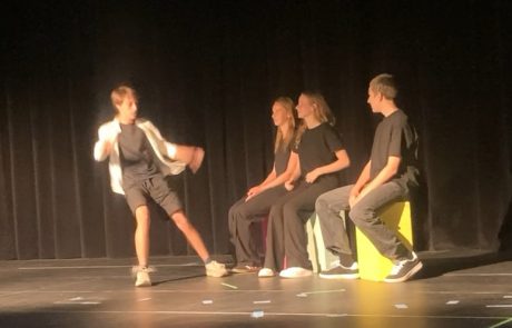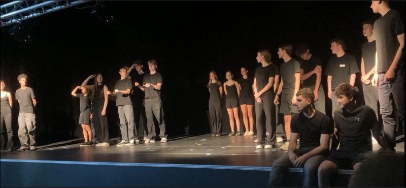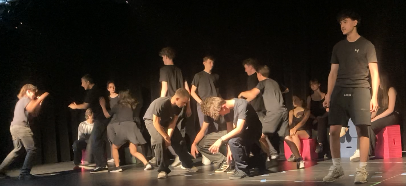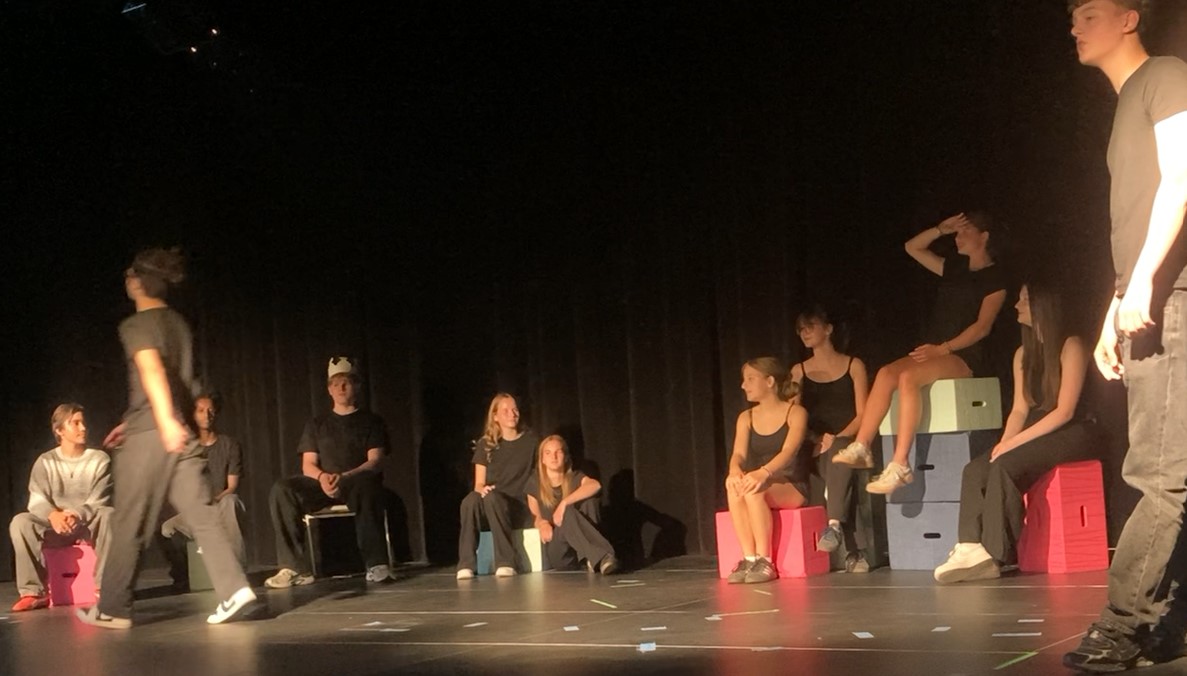 Am Montag, 30.6., zeigten die beiden Wahlpflichtkurse Theater aus dem Jahrgang 9 einige Ergebnisse aus dem diesjährigen Probenprozess. Es war seit Längerem das erste Mal, dass in Jg.9 wieder Theater gewählt werden konnte und trotz widriger Umstände – noch ist die Aula nicht ganz fertig und immer wieder musste räumlich und technisch improvisiert werden – war das Ergebnis beachtlich!