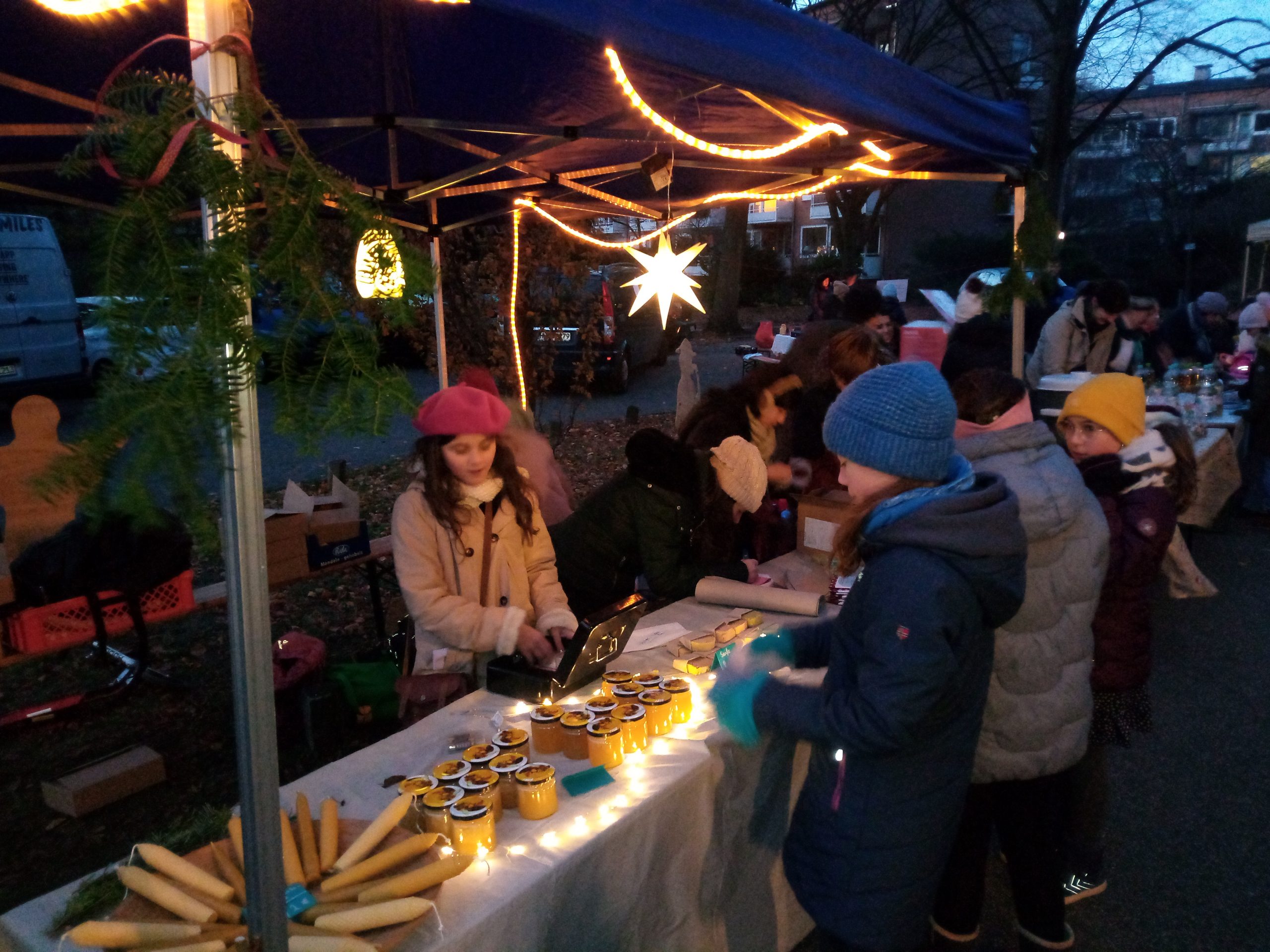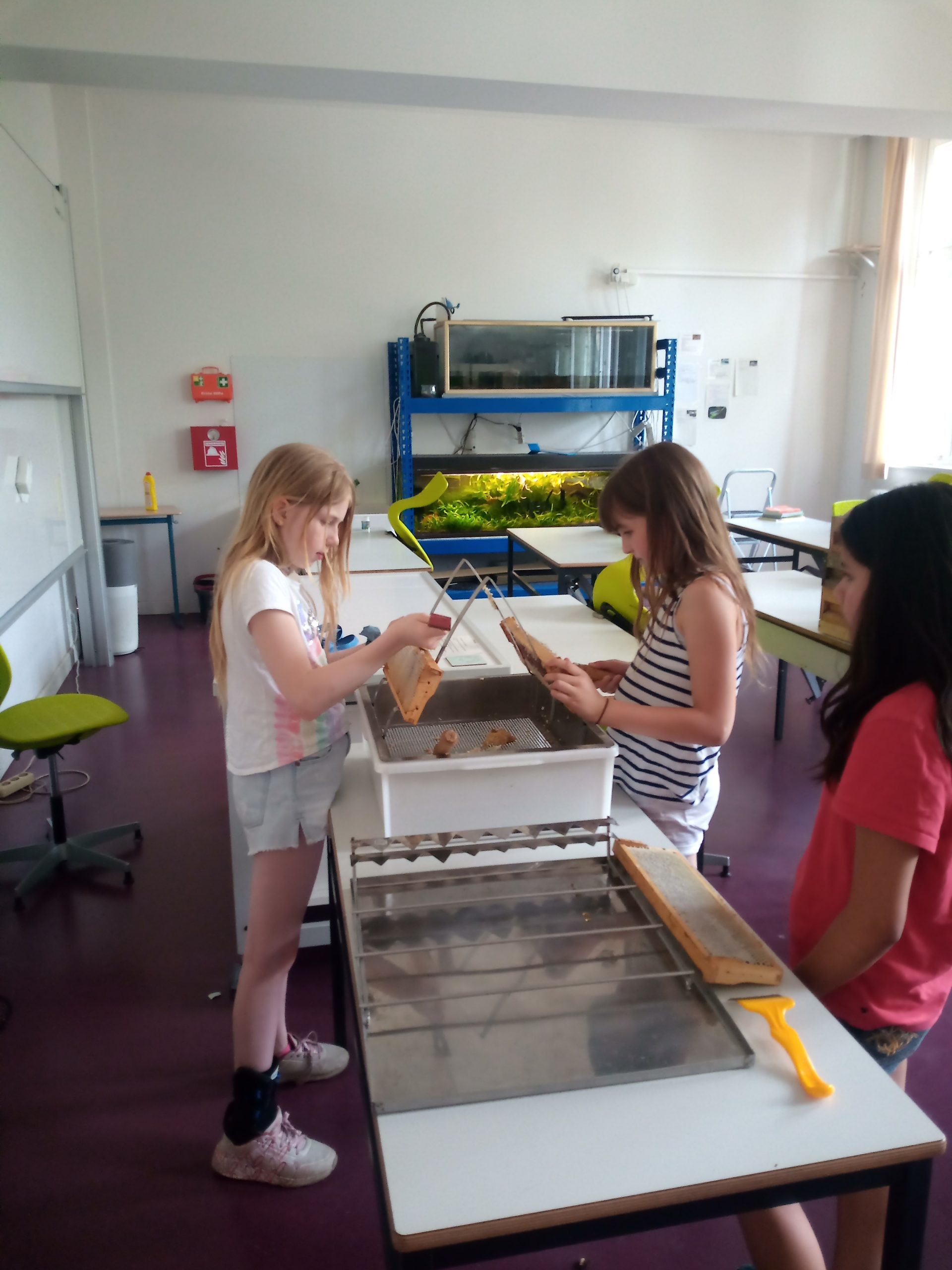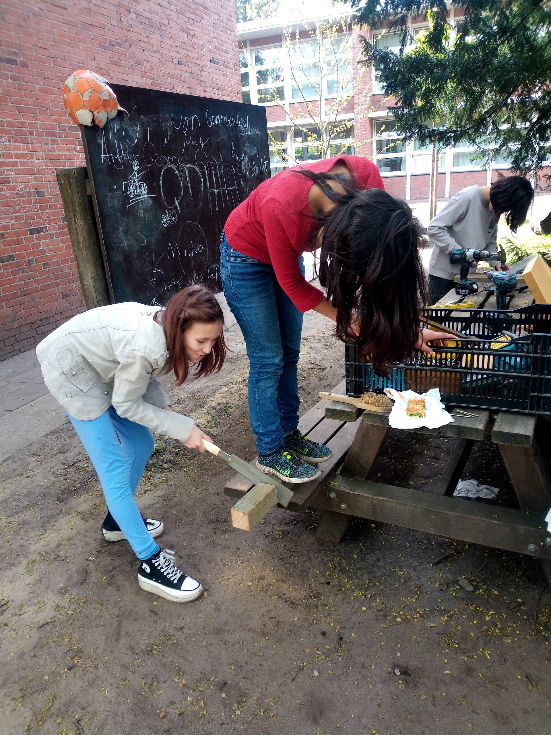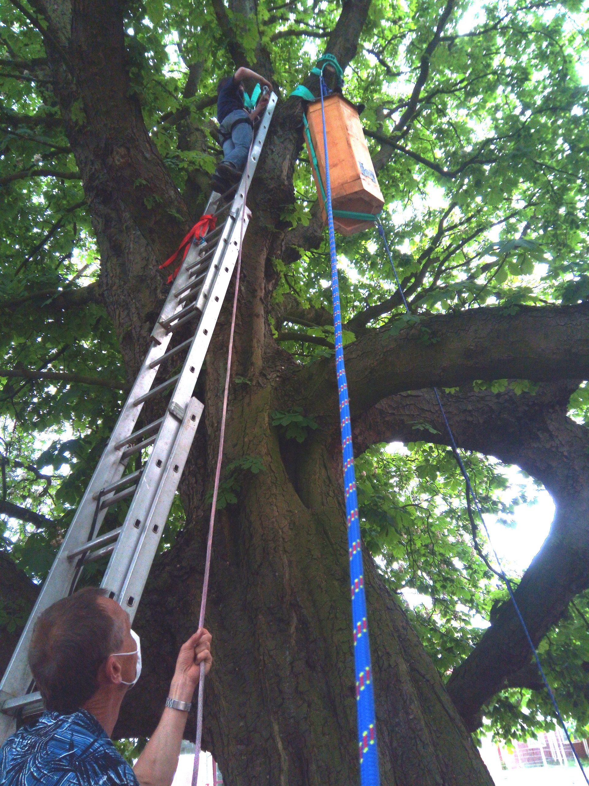 In der ersten Juniwoche ist die Baumhöhlensimulation an das Gymnasium Lerchenfeld gekommen. Im Juni steht die Schulkastanie in voller Blüte. Dieses ist ein günstiger Zeitpunkt für die Bienen.